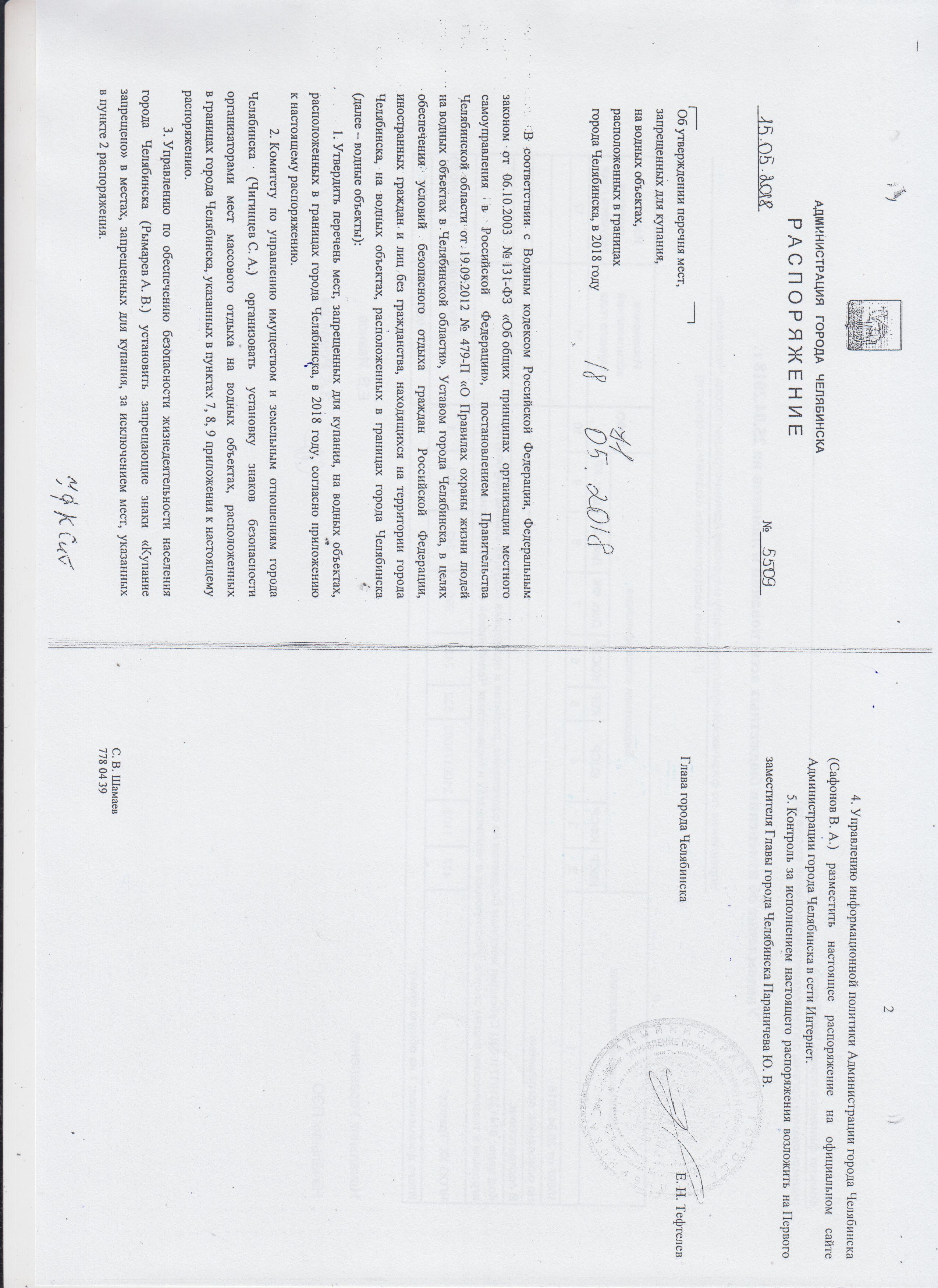 В соответствии с Распоряжением Главы города Челябинска Е.Н. Тефтелева от 15.05.2018 уведомляем вас о перечне мест, запрещенных для купания